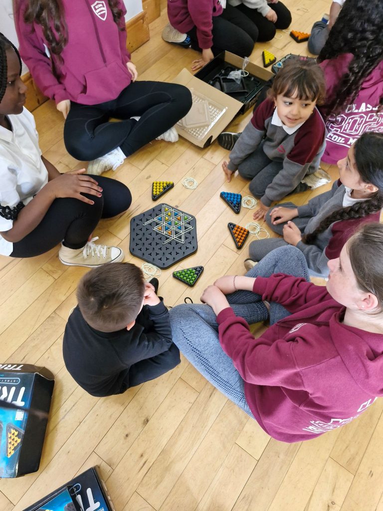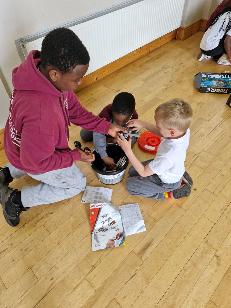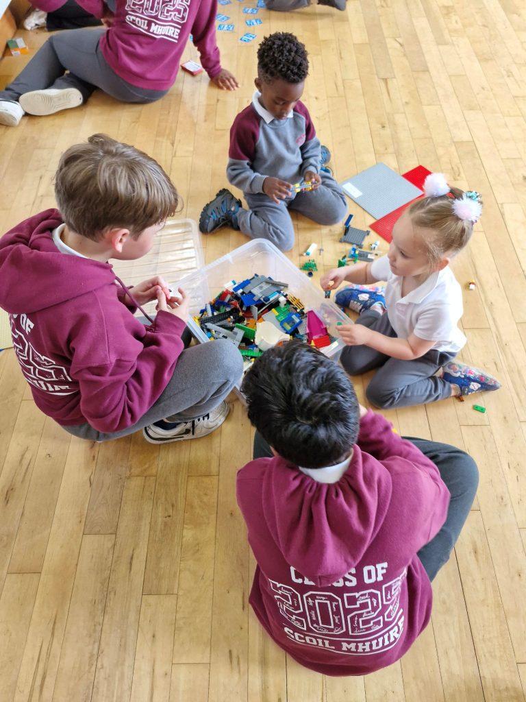 6th class and Junior Infants had a great time working and playing together on Friday in the hall. 6th helped Junior Infants build some impressive Lego pieces and showed them how to play different board games.