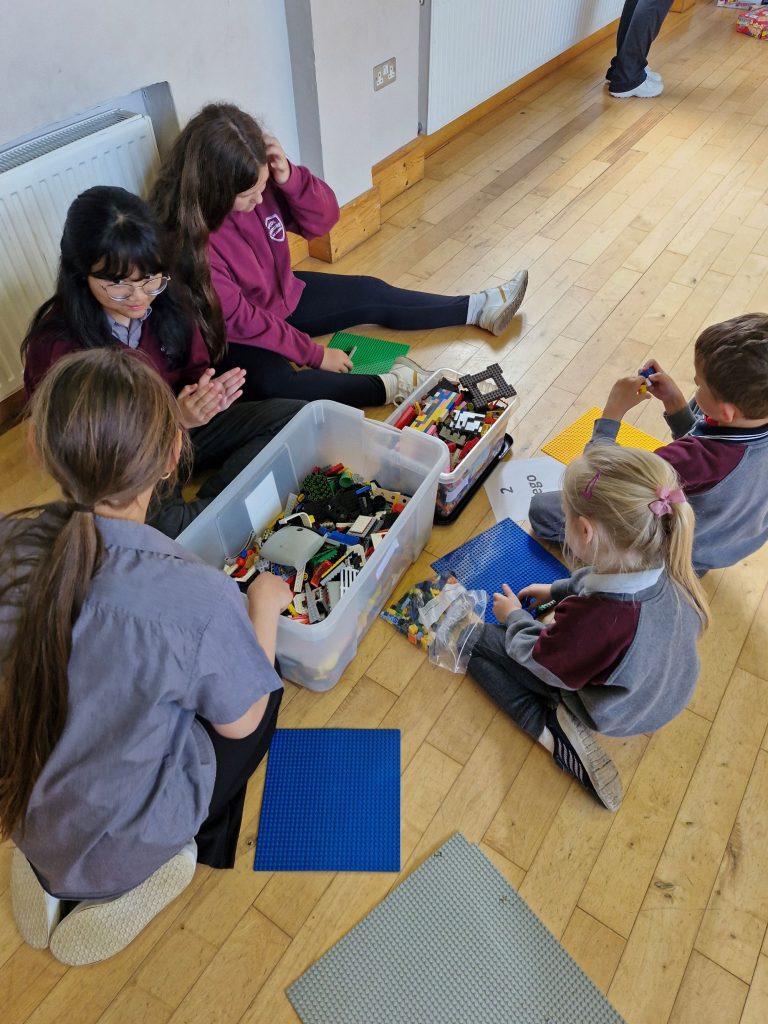 6th class and Junior Infants had a great time working and playing together on Friday in the hall. 6th helped Junior Infants build some impressive Lego pieces and showed them how to play different board games.