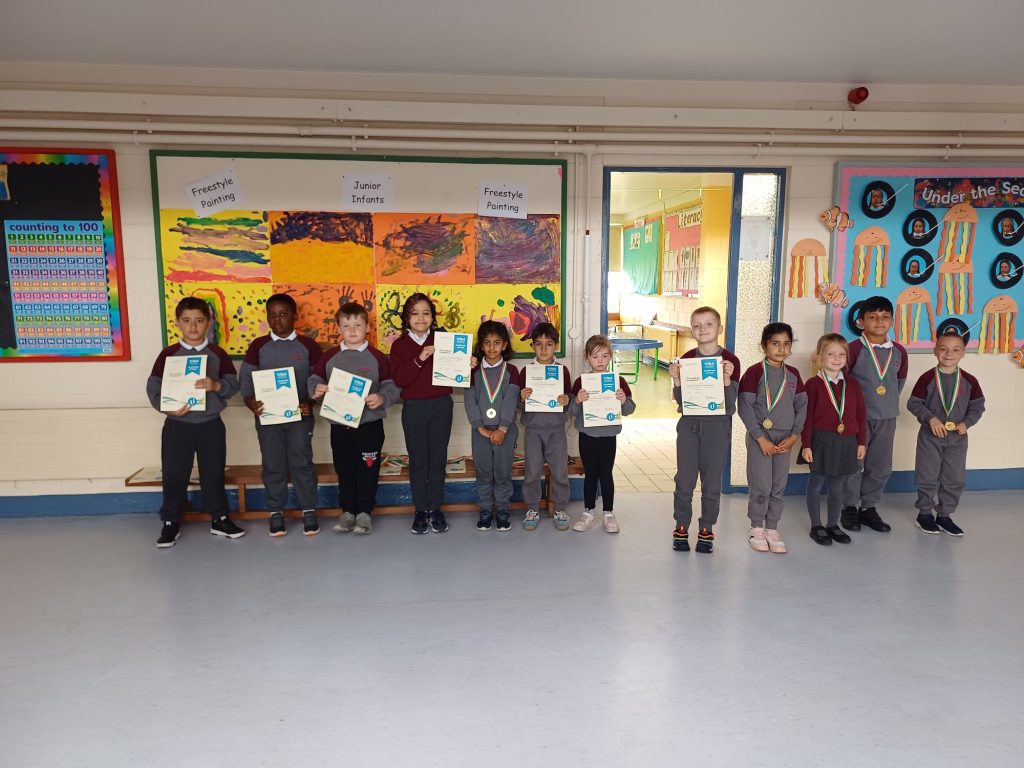 Attendance Assemblies took place in Scoil Mhuire today the 23rd of June. Children who missed no days since returning to school on the 28th of April received a medal and any child who missed three days or less received a certificate for consistent attendance. Every School Day Counts for the children!!!