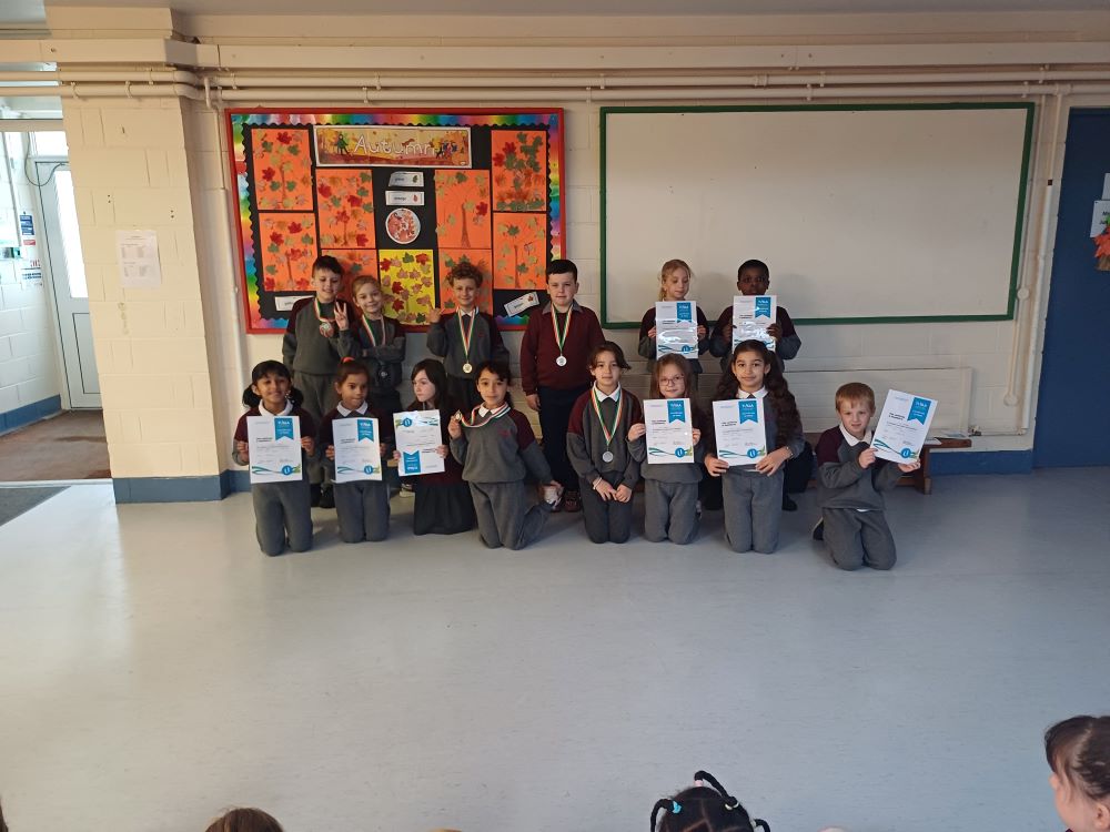 Children received medals for perfect attendance for the 1st part of term 1. Children who missed no more than 3 days received certificates. Well done to everyone for coming to school regularly.