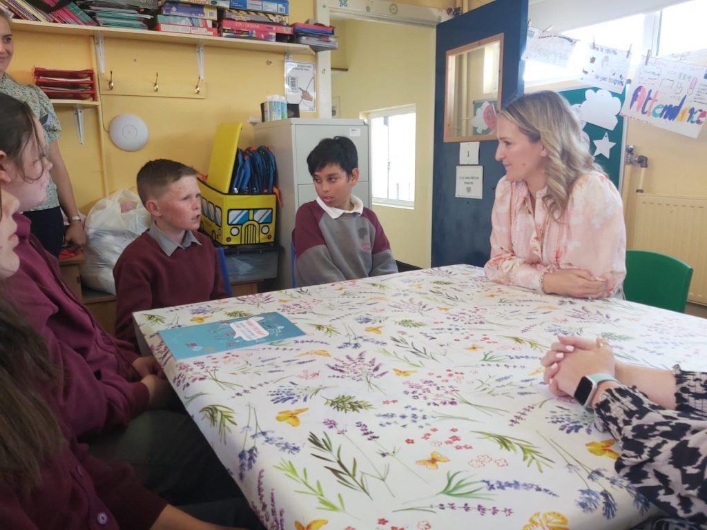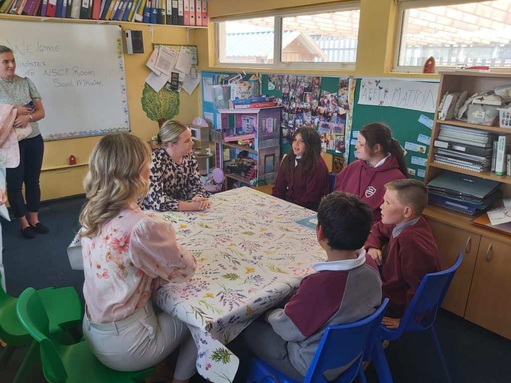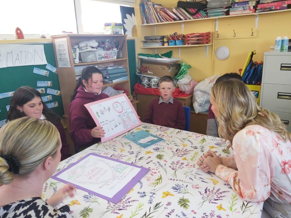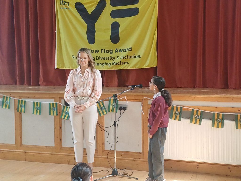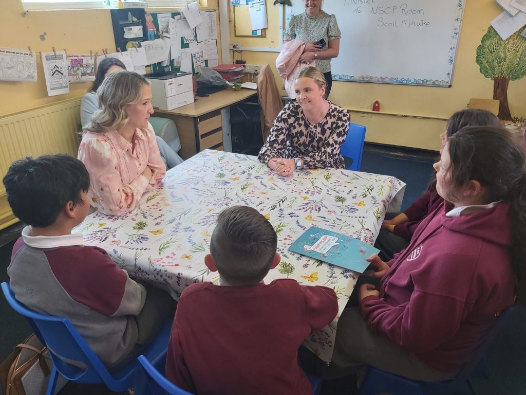 On Friday the 9th of May, Minister Helen McEntee visited our school. The student council welcomed the Minister on her arrival and guided the Minister to the School Completion classroom to speak with children who have benefited from the School Completion Project. The Minister then met with the School Completion Management Committee where she heard how well the programme is working and about the challenges faced within the community. The Minister then visited the school hall where the children from 1st class to 6th class were there to greet her and the whole school sung our Diversity song that the children had written themselves. 4 children then asked the Minister some questions. It was a wonderful day for our school.