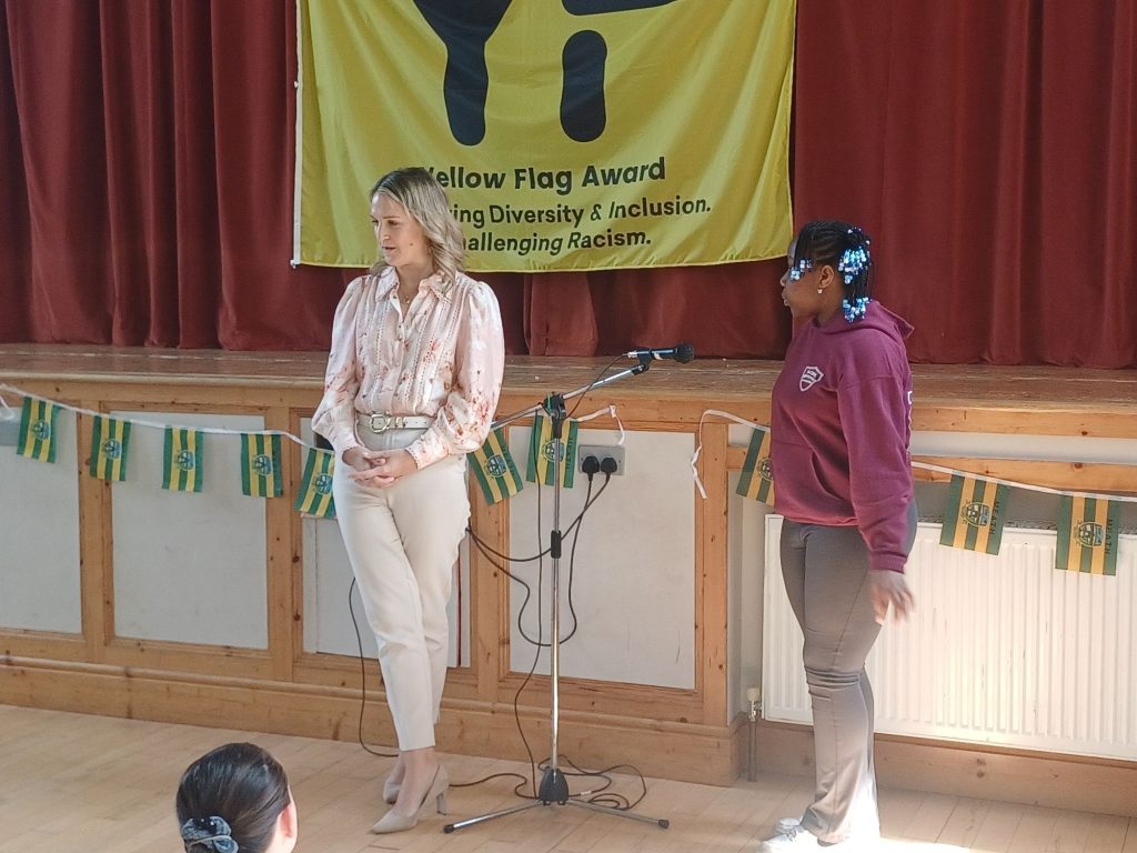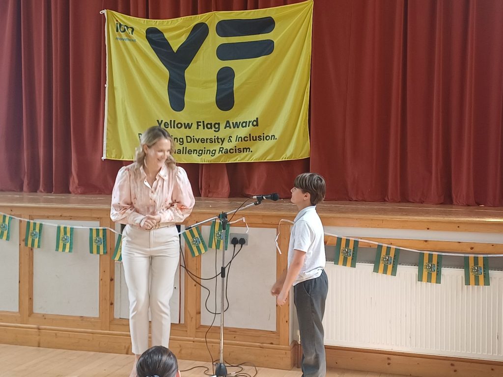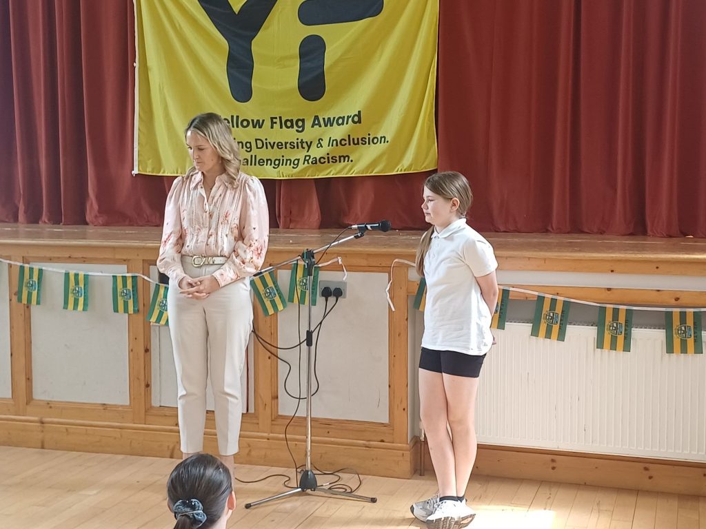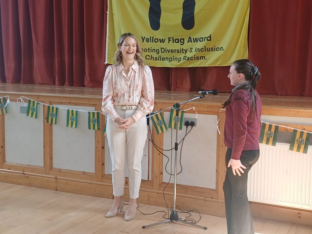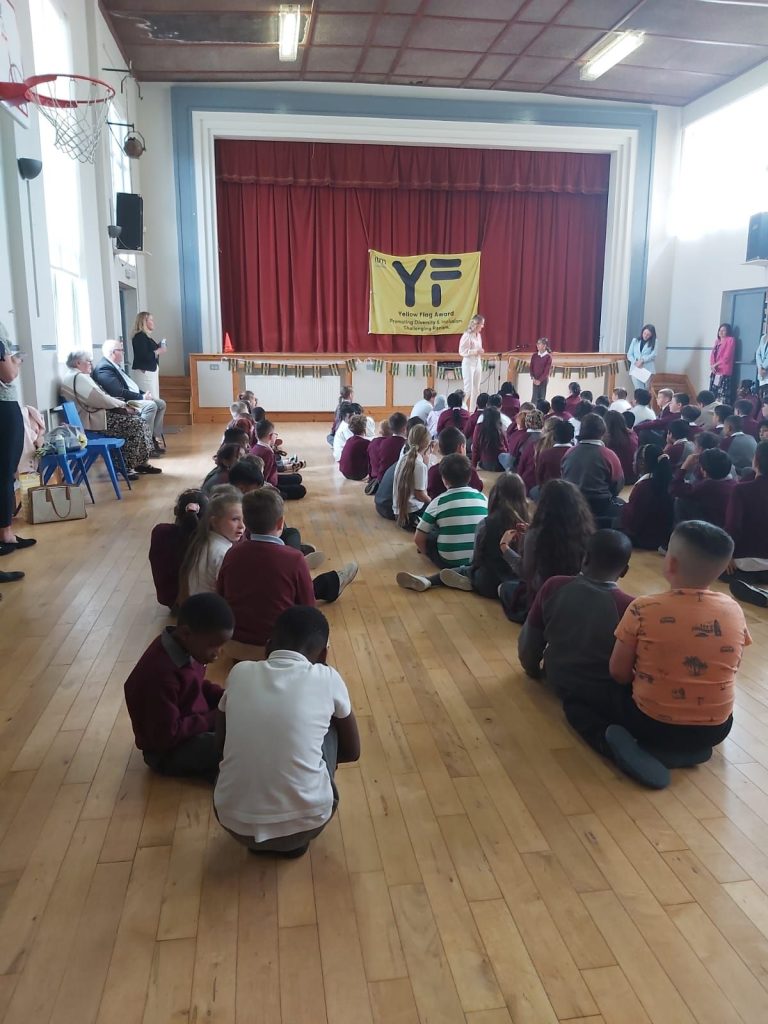 On Friday the 9th of May, Minister Helen McEntee visited our school. The student council welcomed the Minister on her arrival and guided the Minister to the School Completion classroom to speak with children who have benefited from the School Completion Project. The Minister then met with the School Completion Management Committee where she heard how well the programme is working and about the challenges faced within the community. The Minister then visited the school hall where the children from 1st class to 6th class were there to greet her and the whole school sung our Diversity song that the children had written themselves. 4 children then asked the Minister some questions. It was a wonderful day for our school.