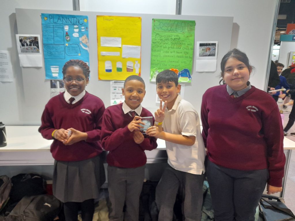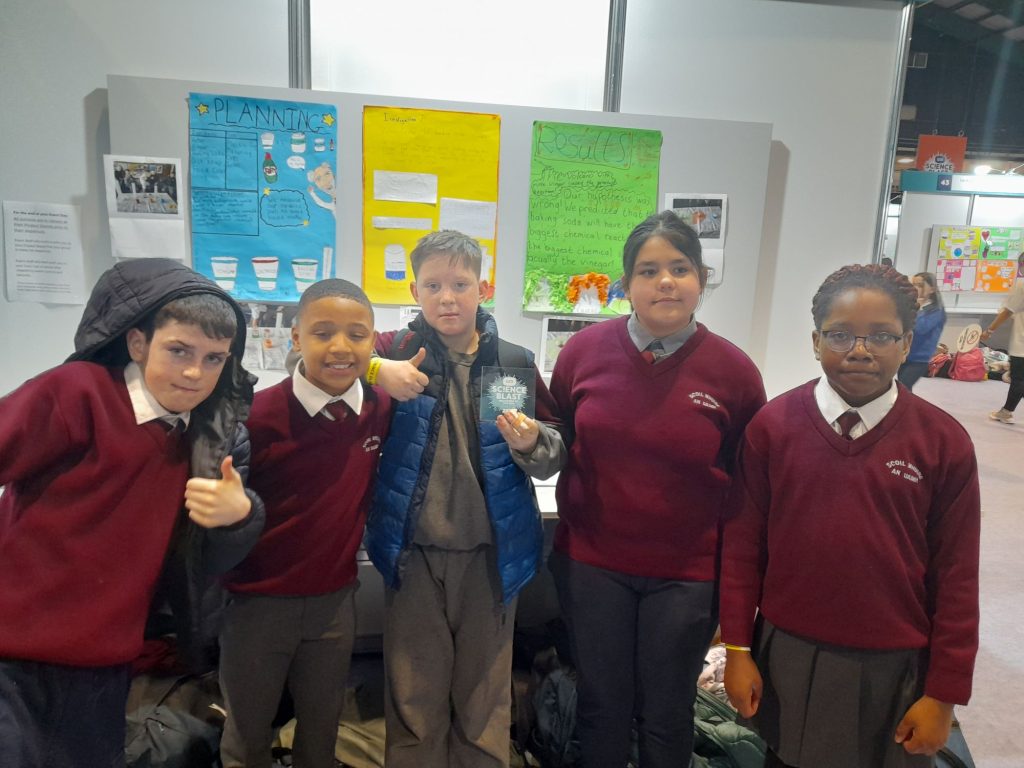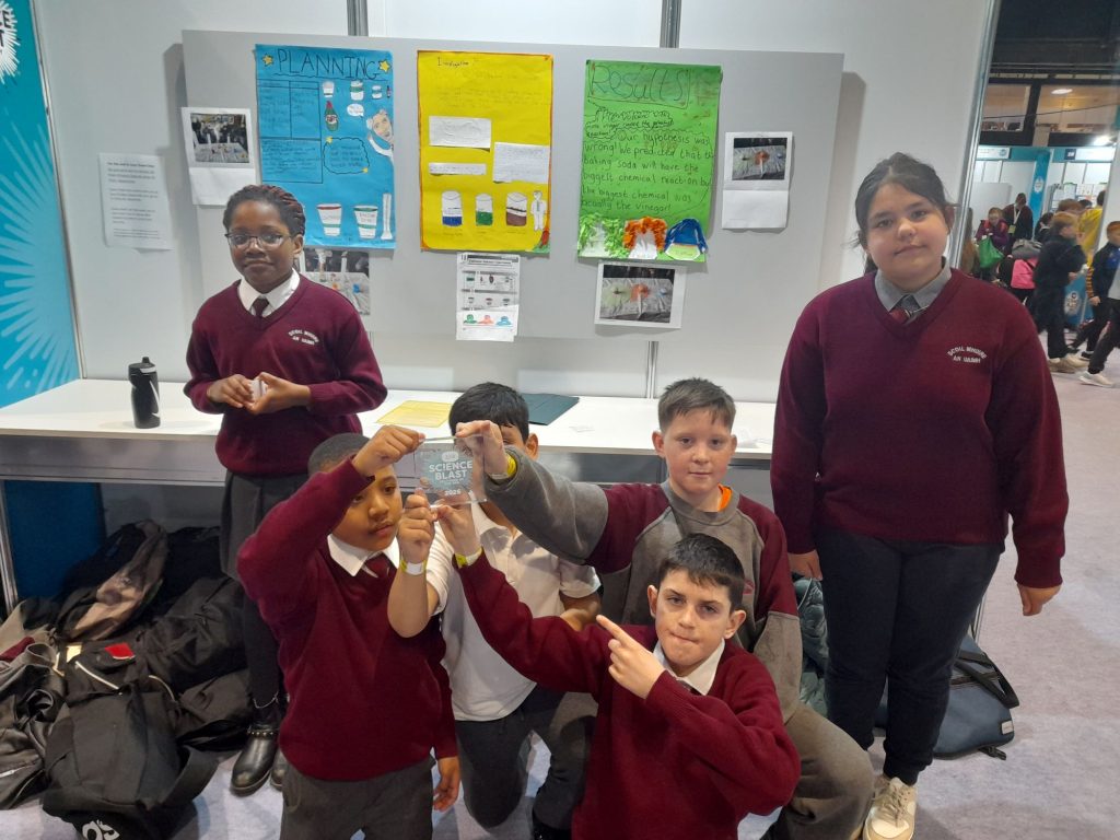 Ms. Power’s 5th Class presenting their projects at science blast on March 3rd. The children had great fun and received a trophy for all their hard work.